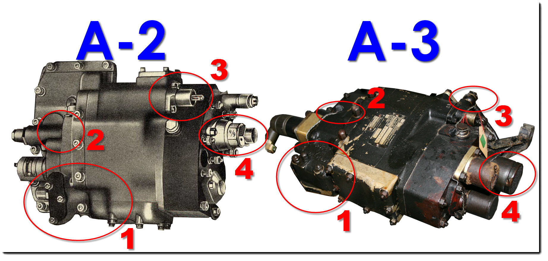 Die Versionen 9-2021 A-2 und A-3 sehen sich naturgemäß sehr ähnlich. Aus den Bilder ist zu erkennen, dass sich die Einspritzpumpen anscheinend nur durch den Einspritzpumpen-Regler und dem Regelgetriebe unterscheiden. Die A-2 hatten den Einspritzpumpenregler 9-2021.32-000 und die A-3 (und auch die E-1) den Einspritzpumpenregler 9-2021.35-000.
