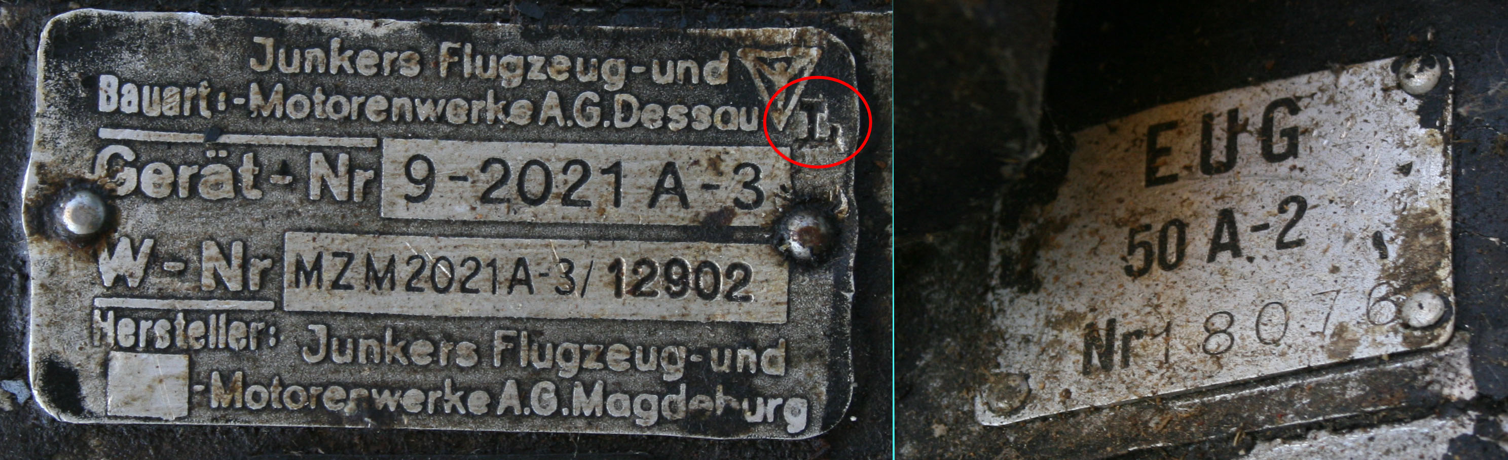 Das obere Bild stammt von einer Einspritzpumpe, die umgebaut wurde. Das rechte Bild zeigt das Typenschild des Pumpengehäuses (Baugruppe 50) Typ der Einspritzpumpe A-2 und die Seriennummer. Die selbe Vorgehensweise gibt es auch am Entlüfter, sieht genauso aus aber die Baugruppe ist 40. Das linke Bild zeigt das neue Typenschild der A-3 auf dem Regler. Oben links (rot markiert) das Werk, das den Umbau vorgenommen hat, in unserem Fall Leipzig.
