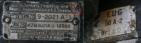 Da es heute keine A-2 mehr zu finden sind, ist recht einfach zu erklären. Wie bei den früheren Einspritzpumpen gab es auch bei der A-2 eine "Modernisierung und Umbau der Kraftstoff-Einspritzpumpen". Es wurde hier der Regler samt Getriebe getauscht und schon war es eine A-3 Einspritzpumpe. So wie bei den vorangegangen Modernisierungen oder Umbau musste die Seriennummer der A-2 mit auf der Einspritzpumpe erhalten bleiben und das neue Typenschild mit neuer Seriennummer und die Werknummer des Werkes für den Umbau wurde auf dem Regler befestigt. (siehe rechtes Bild)