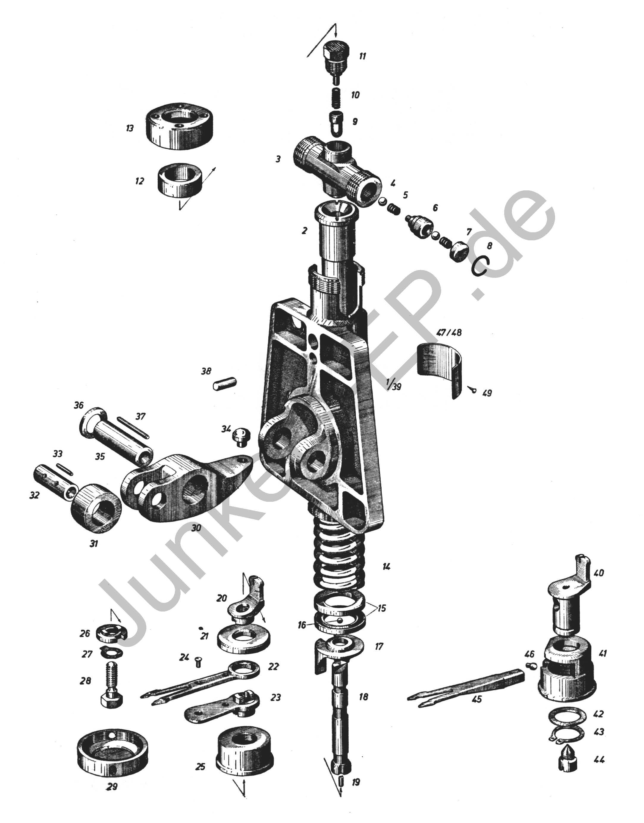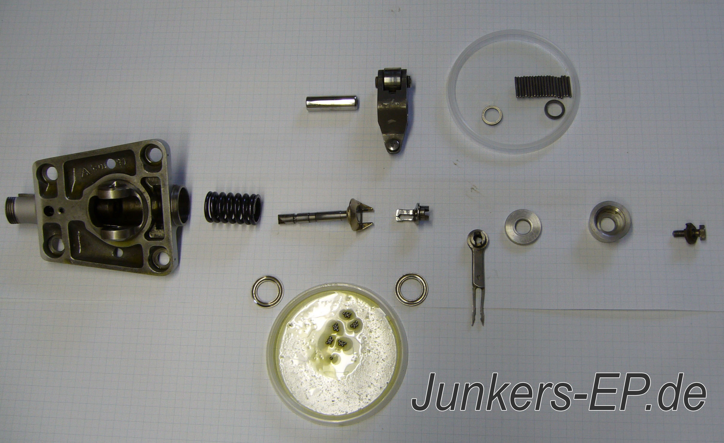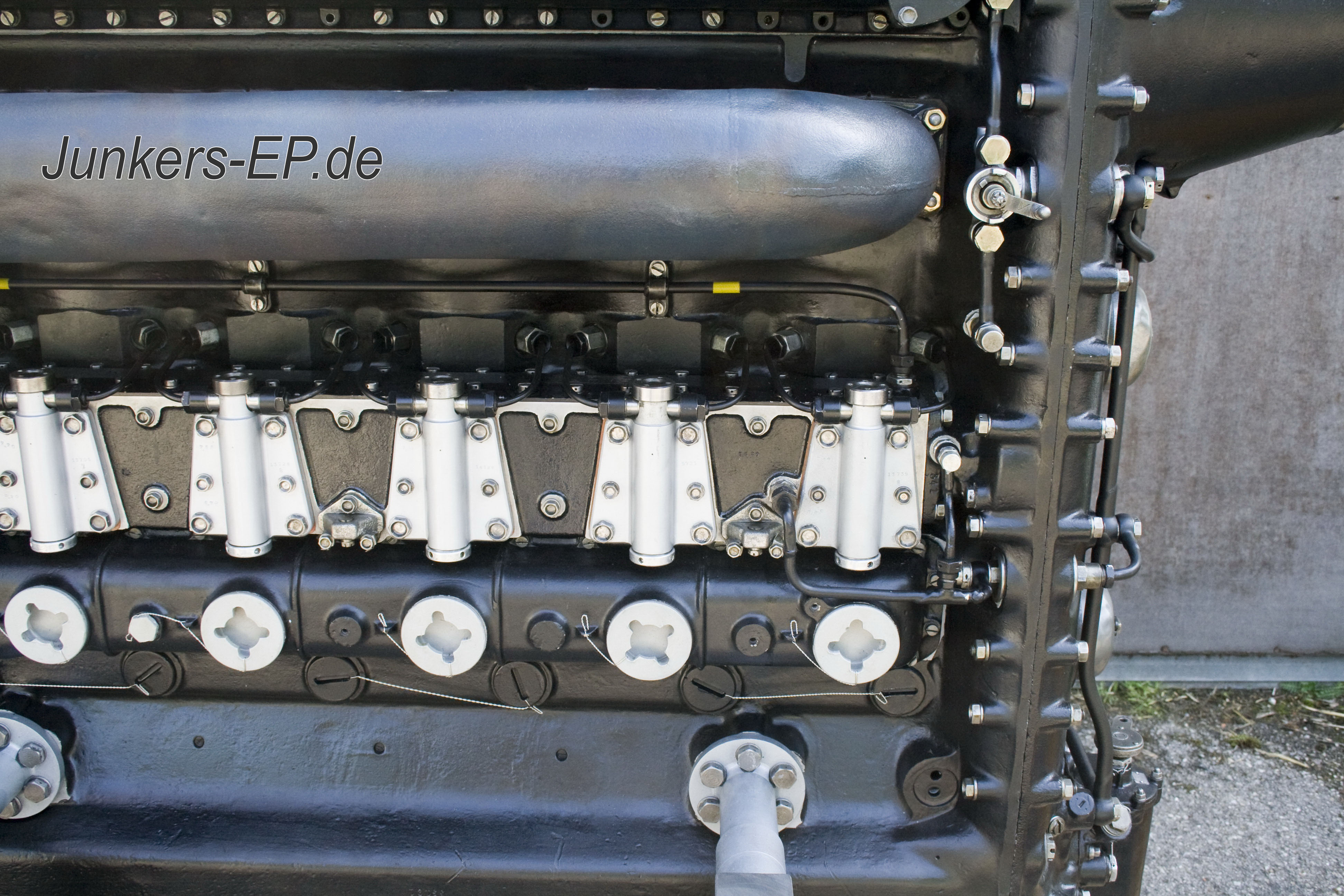 Der Jumo 205 macht hier eine Ausnahme bei den Einspritzpumpen, passt nicht so recht hierher aber eine Erwähnung wert. Die Entwicklung der Gegekolbenmotoren und die Einspritzung von Schweröl hat weit vor dem Jumo 205 begonnen. Die unmittelbaren Vorgänger des Jumo 205 (Fo 5), der Fo 3 und Fo 4 (Jumo 204) waren die Vorläufer der jetzigen uns bekannten Einspritzpumpen in kompackter Bauweise. Hugo Junkers hat viel Zeit und Arbeit in die Entwicklung von Schweröl-2-Takt-Gegenkolben-Motoren investiert und war von diesem Prinzip überzeugt. Der Jumo 204 ist praktisch der größere Brüder und wurde erfolgreich z.B. in der Junkers G38 und Wasserflugzeugen von Dornier eingesetzt. Bald war klar, dass ein Triebwerk für kleinere Flugzeuge benötigt wurde. Auf dem rechten Bild sieht man den Größenvergleich, links der Jumo 205 und rechts der Jumo 204 (Fo 4). Soweit mir bekannt ist, ist der Jumo der stärkste Dieselflugmotor, der jemals in einer Serienfertigung hergestellt wurde.