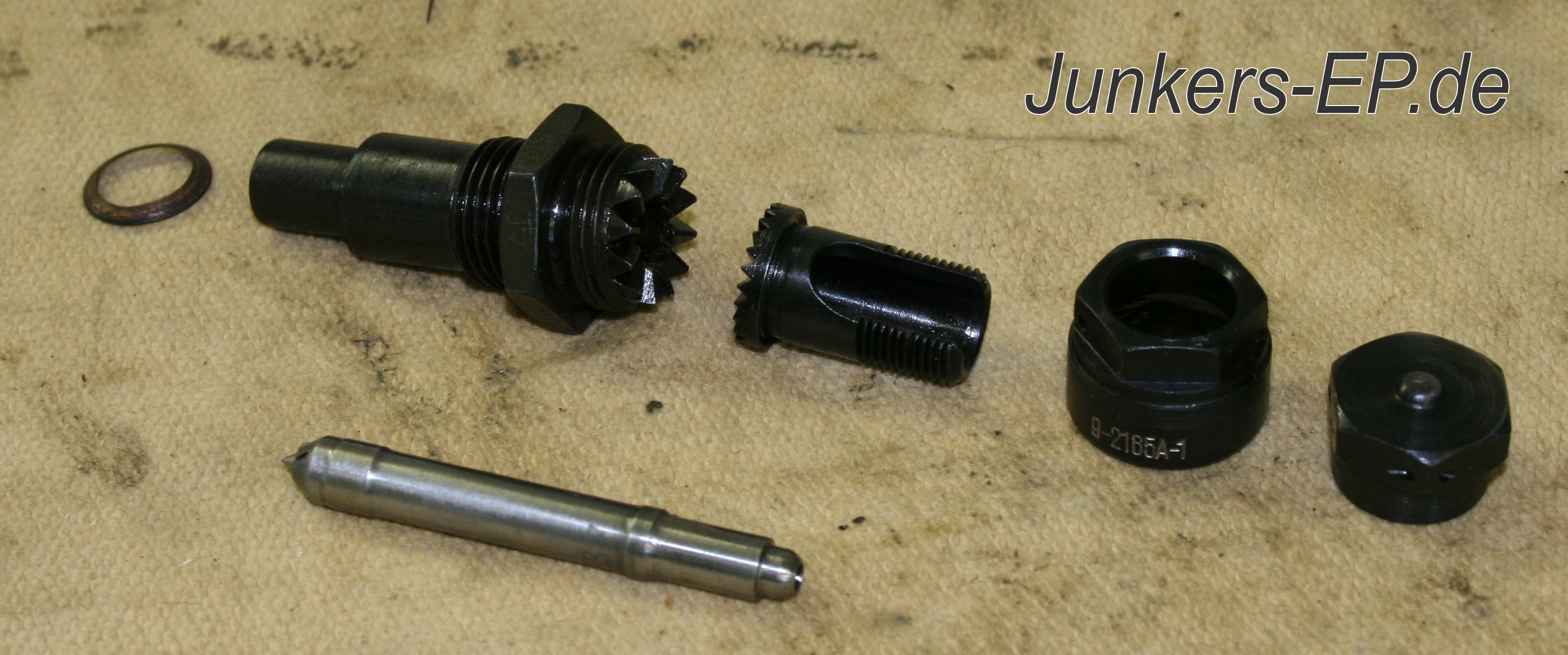 Rechts sind die Einspritzdüsen zu erkennen und im letzten Bild unten ist der Unterschied zwischen der 9-2008 A-0 bzw. 9-2165 A-1 (3-nutig) und der 9-2165 A-2 (6-nutig) zu sehen.